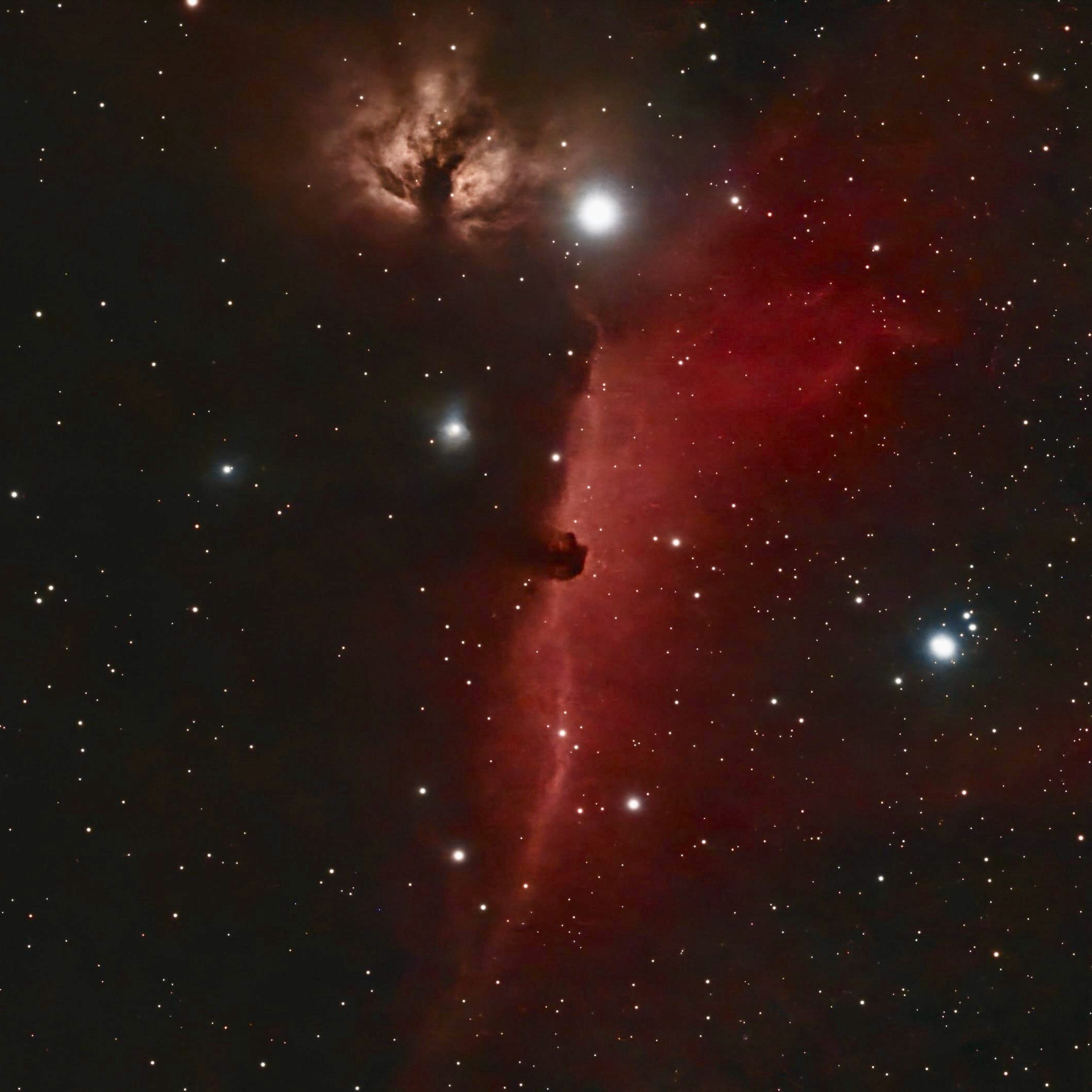 Komplex mlhovin v okolí hvězdy Alnitak v Orionu po 30 minutách snímaní „trpaslíkem“ Dwarf3.